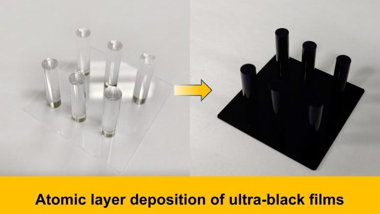 The team’s ultrablack coating can be applied to curved surfaces and magnesium alloys to trap nearly all light. Credit: Jin et al. Thin film coating can be applied to magnesium alloys for aerospace and optics…